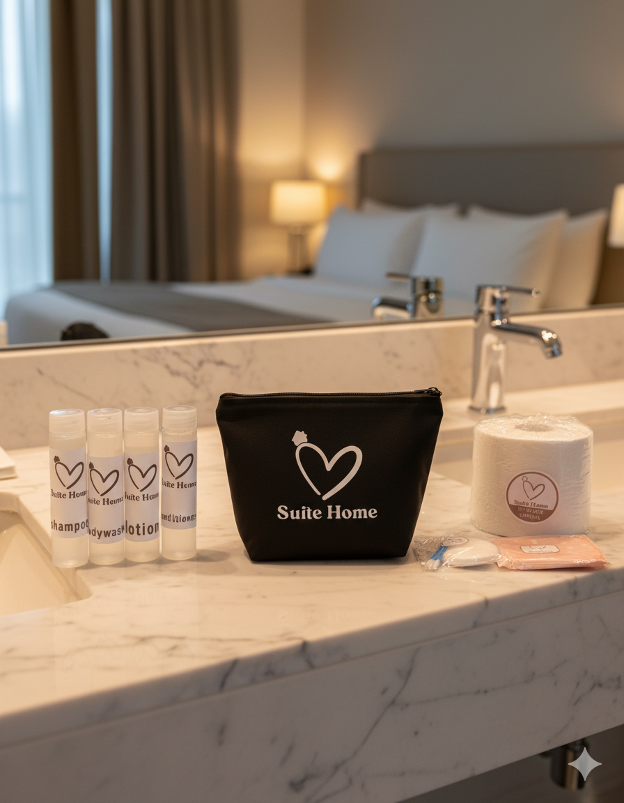 Sorprende a tus huéspedes con el Kit SUITEHOME Higiene, el detalle perfecto para tu alojamiento. Este kit de bienvenida incluye productos esenciales de higiene personal que garantizan comodidad y cuidado durante su estancia. Ofrece una experiencia agradable, mostrando atención al detalle y compromiso con el bienestar del huésped. Un regalo que marca la diferencia en la hospitalidad.